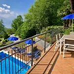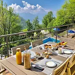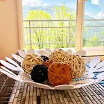 A Maccagno városi ingatlanban való tartózkodás élményét emeli a szezonális kültéri medence és kert.
